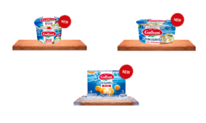 La gamme complète des desserts : l’original, cerise, citron, framboise, caramel, café, caramel et noisette est aussi disponible en GMS.